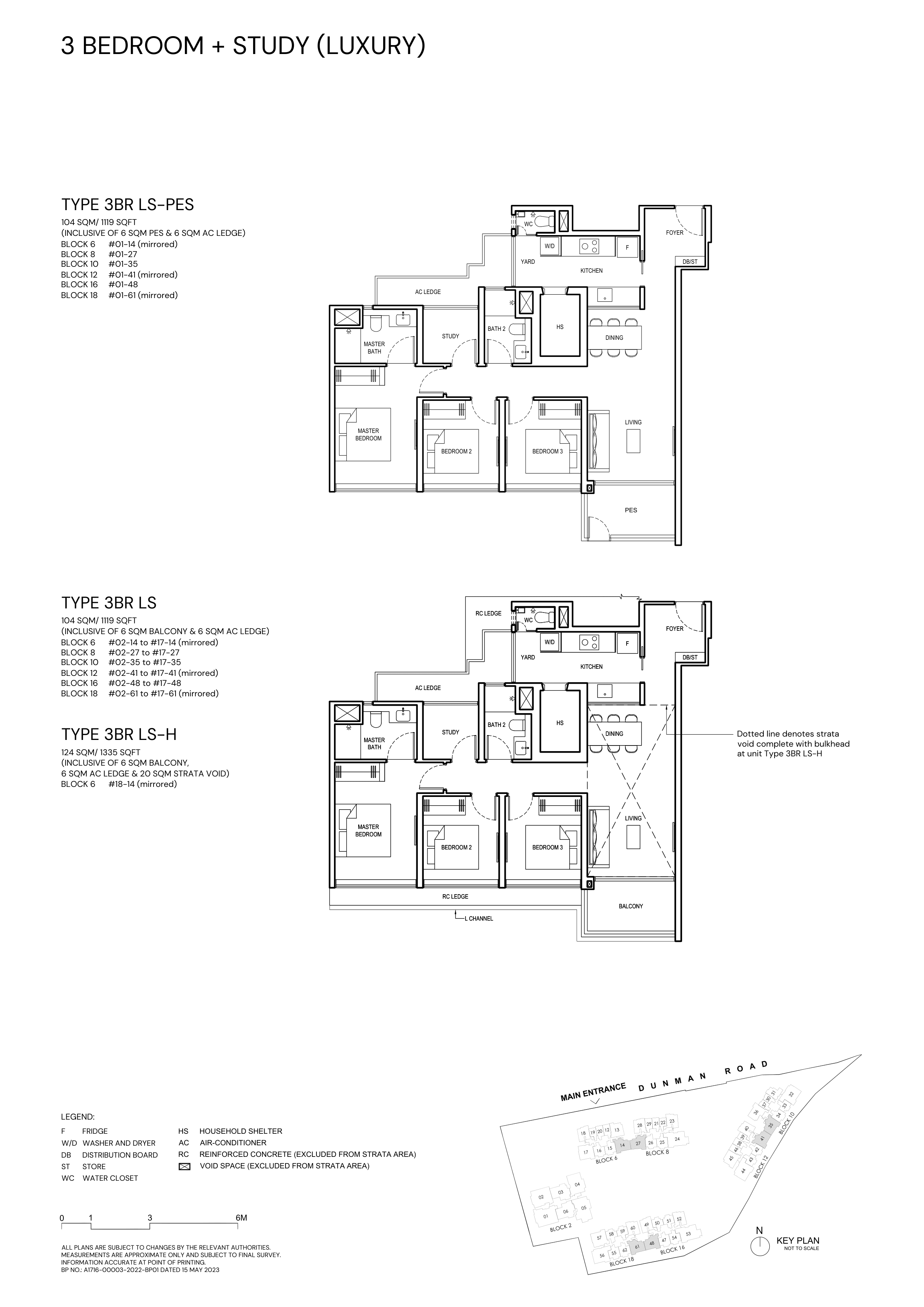 | 3 Bedroom + Study (Luxury) | 103 | 1,119 - 1,335 | |